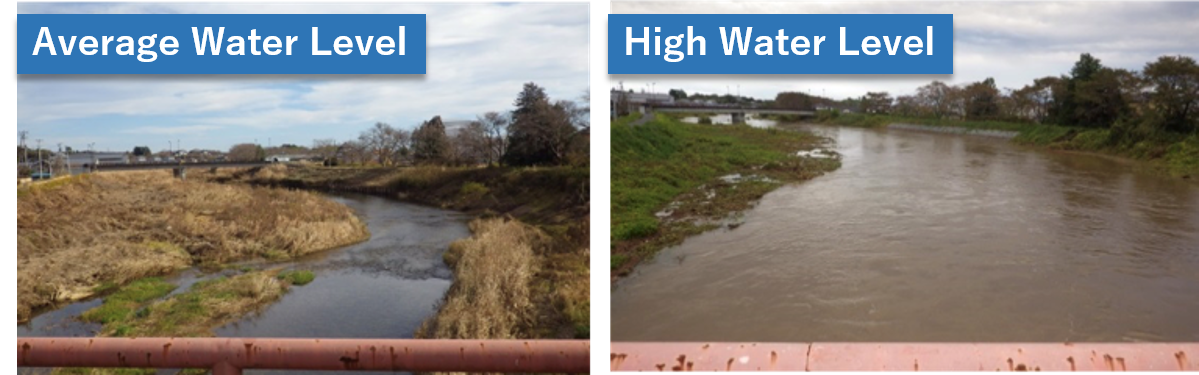 Higher part of flood plain than low-water channel. High-water channels are utilized as a park and so on, and become under water when flooding.
