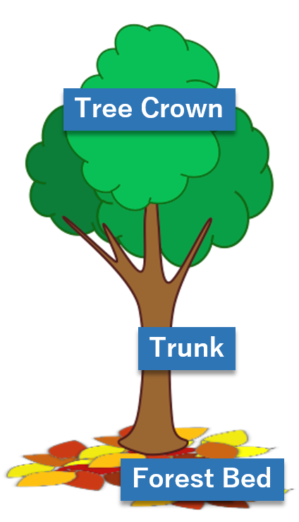 Ground surface of forest and nearest part of ground surface.