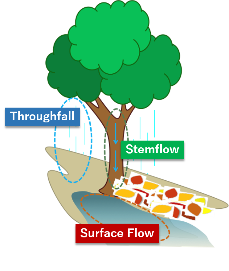 Rainwater falling to forest bed through the crown.