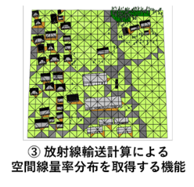 その後、より簡便に除染の効果など空間線量率を推定できる空間線量率評価モデル“ADRET(アドレット)”、逆に地形や地上構造物などの影響までも考慮できる高度な線量率評価モデル“3D-ADRES(スリーディーアドレス)”を開発しています。