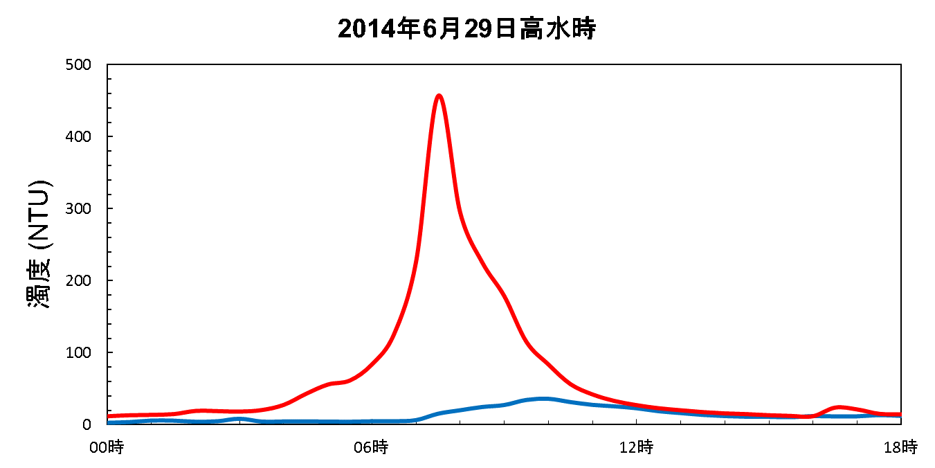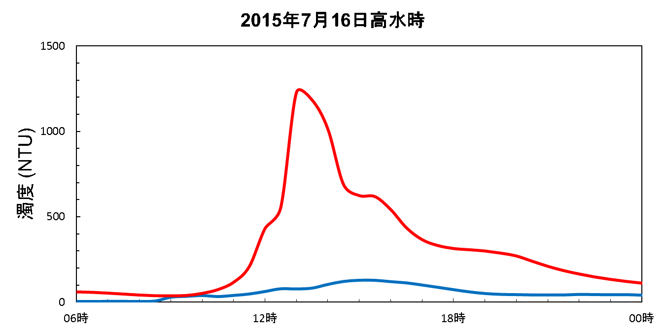 図2.7 請戸川における高水時の濁度の時間変化