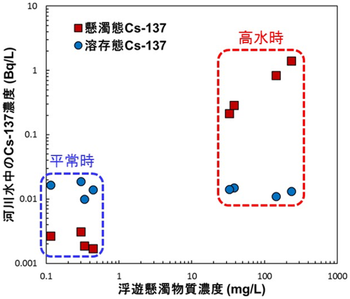 (■:溶存態137Cs濃度、■:懸濁態137Cs濃度)