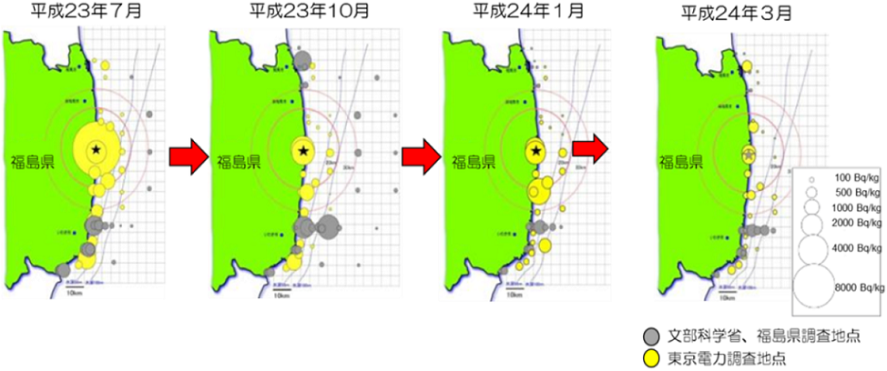 図5.4 福島沖の海底土中の放射性セシウムのモニタリング結果