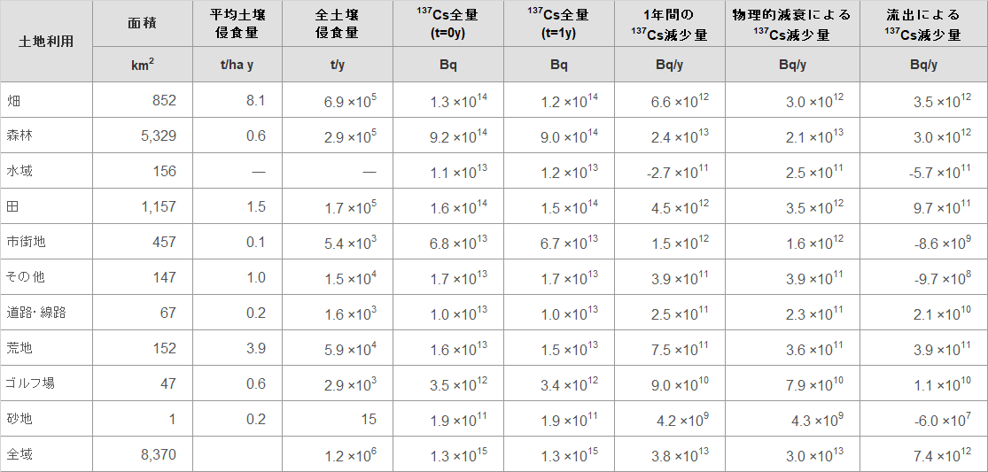 表2 土地利用区分ごとの土壌流出量および137Csの動態