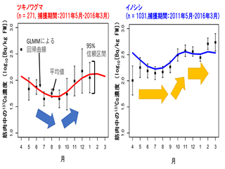 Q 福島県内の野生動物の放射性セシウム濃度はどのように変化していますか。