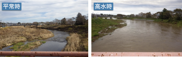 河川敷の、低水路より一段高い部分の敷地。平常時には公園など様々な形で利用されるが、洪水時には水に浸かる。