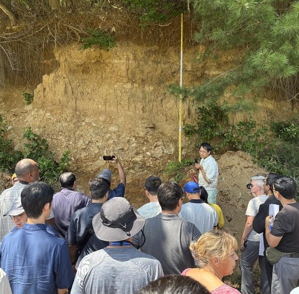 Dr. FUJII Kazumichi, Unit Leader of F‑REI's Soil Homeostasis Research Unit (Agriculture, Forestry and Fisheries), actively participated in the conference. On the first day, he presented a poster of his research on soil water retention. On August 21, Unit Leader Fujii guided participants on a tour to Iitate Village, where he showed and explained various layers of soil in forest and farmland.