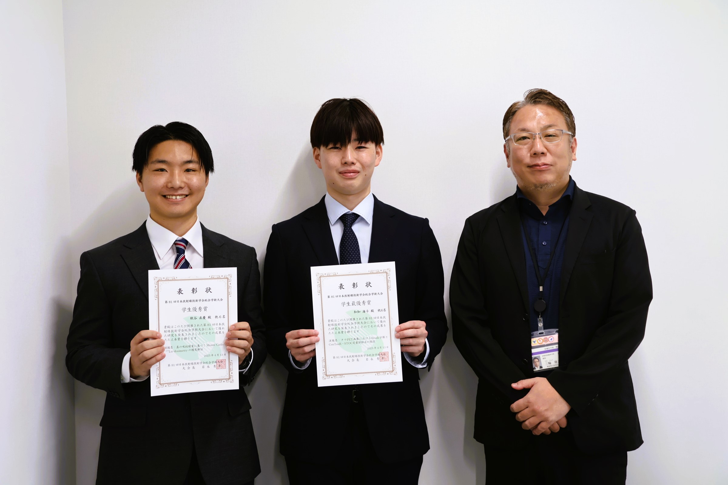 July 4, 2025, Fukushima Medical University graduate students WACHI Kaito and AKIYA Naochika received an award at the 81st Annual Meeting of the Japanese Society of Radiological Technology, the world’s largest academic conference in the field of radiology. The two are currently affiliated with Miwa Laboratory at the Graduate School of Health Sciences, Fukushima Medical University, where they are conducting research on nuclear medicine** therapy. Their graduation research has gained recognition and ultimately earned them this award.
