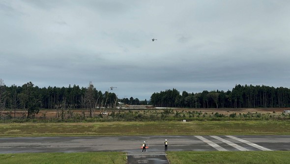 On the left: Drones at HEDC use the RTF Namie Runway for take-off and landing, flying up to 13km.